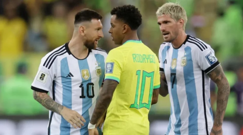 Messi e Rodrygo se desentenderam no último confronto entre Brasil e Argentina, em 2023 | Foto: Ricardo Moraes – (Reuters)