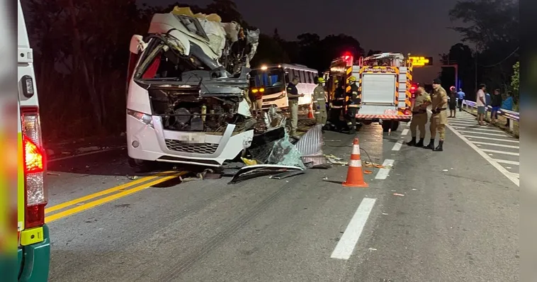 Segundo informações preliminares, o motorista da carreta invadiu a contramão e colidiu frontalmente com o primeiro ônibus do comboio O veículo transportava 25 alunos, dois motoristas e um orientador.
