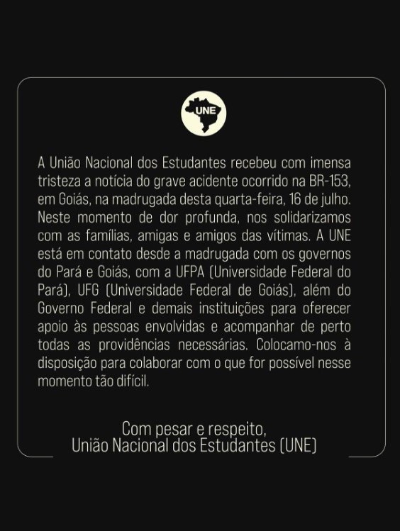 O acidente gerou forte comoção entre familiares, estudantes e membros da comunidade acadêmica. A União Nacional dos Estudantes (UNE) emitiu nota oficial lamentando profundamente a tragédia:
