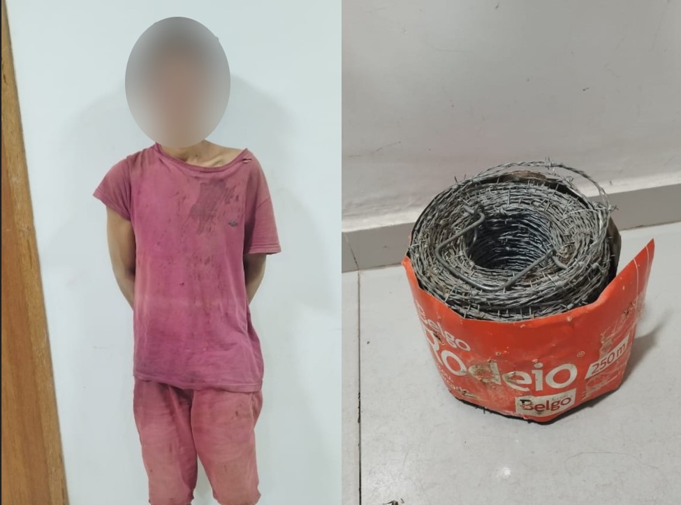 Nesse sentido, os Populares informaram aos policiais que o homem já era suspeito de diversos furtos na região e, por esse motivo, moradores o capturaram e amarraram. Logo, durante a ação, os militares apreenderam com ele um rolo de arame farpado de 250 metros.