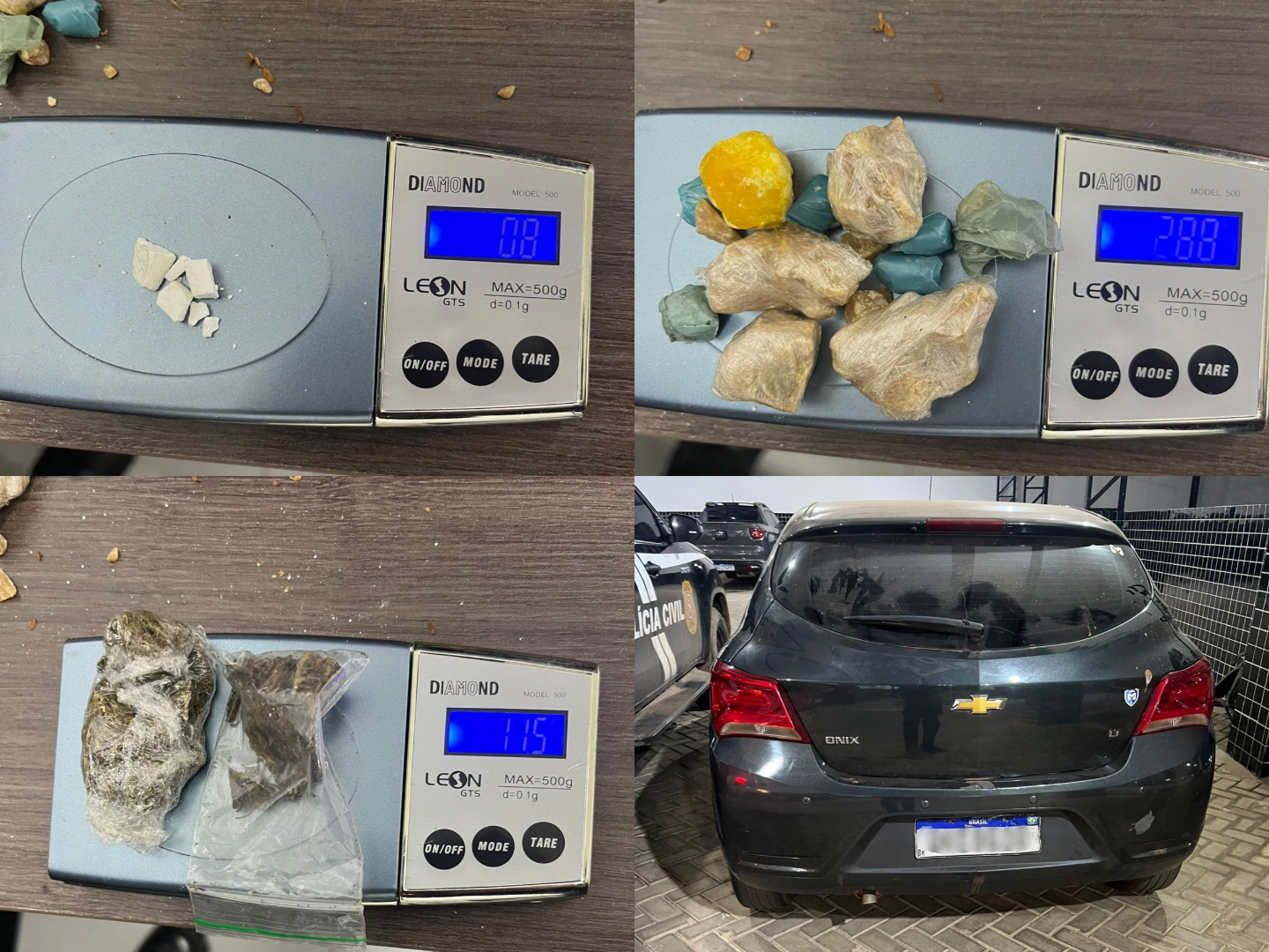 Portanto, os policiais apreenderam, além dos entorpecentes e celulares, um relógio e o veículo usado na ação. Em seguida, conduziram os suspeitos à Delegacia de Polícia Civil local, onde registraram o caso em Boletim de Ocorrência. Sendo assim, as autoridades seguem com as investigações e providências cabíveis.
