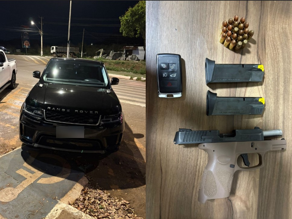A guarnição localizou o veículo do suspeito, um Range Rover, de cor preta, estacionado em frente ao imóvel. O condutor foi abordado e identificado como Joaquim Ferreira Lima Neto.