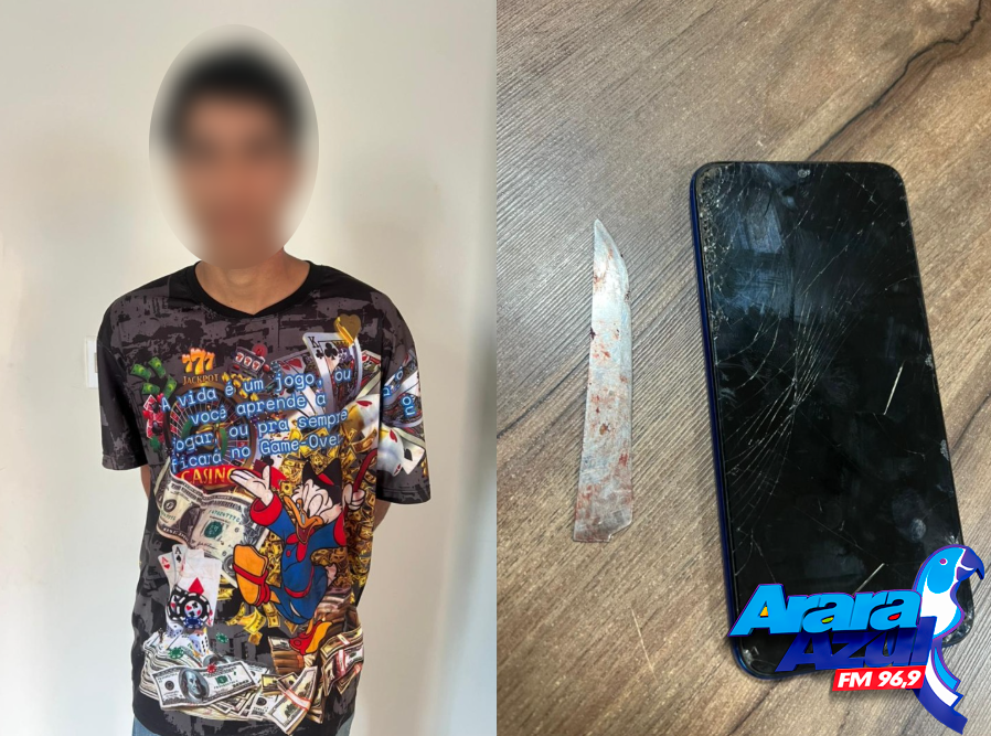 Ao chegarem ao endereço informado, os policiais primeiramente detiveram e prenderam Eliel Lima de Jesus, identificado pela testemunha como autor do ataque e, em seguida, apreenderam com ele uma lâmina de faca com vestígios de sangue, possivelmente utilizada no crime, além de um telefone.