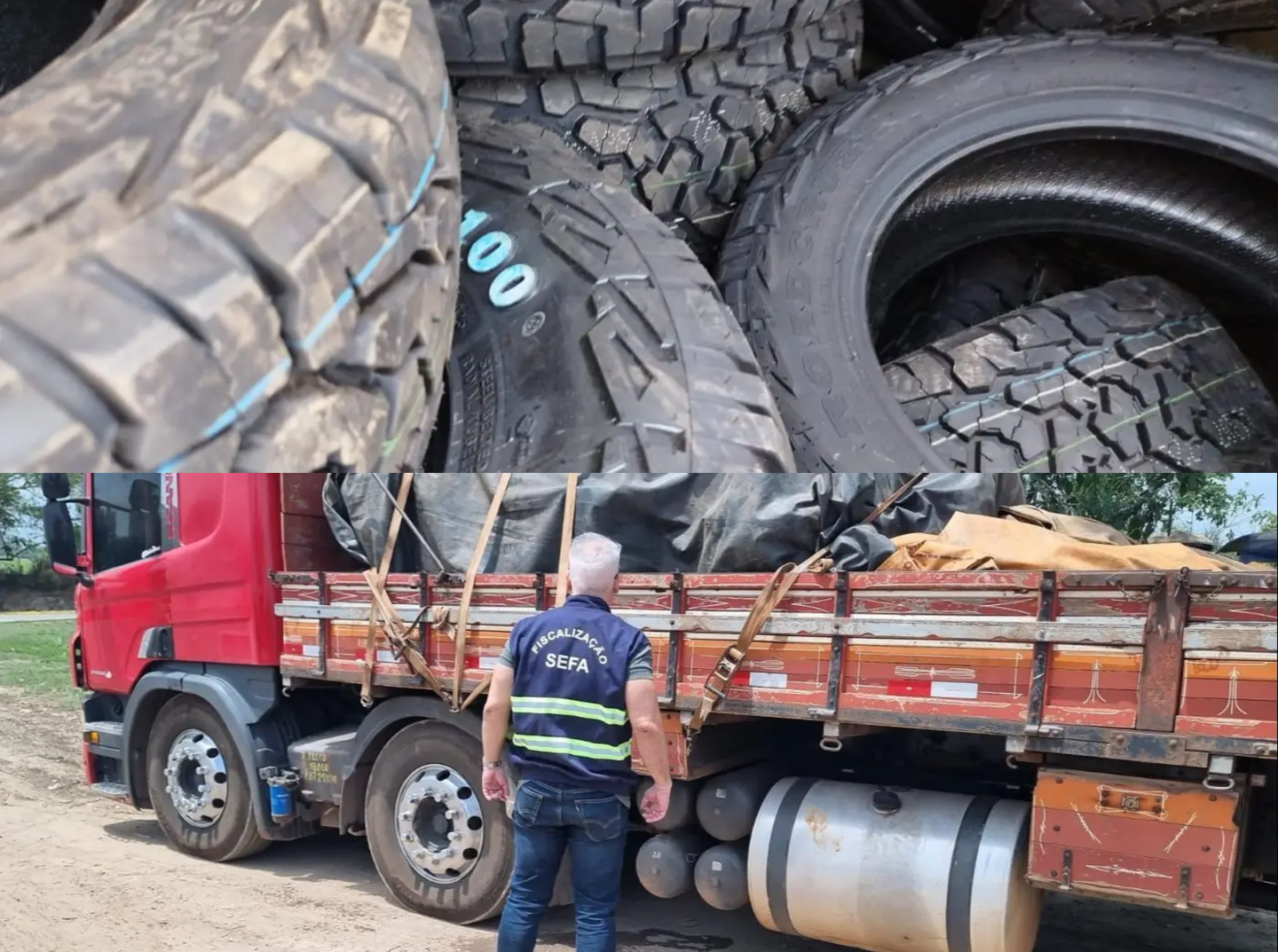 “as equipes de fiscalização abordaram uma embarcação proveniente de Manaus (AM) com destino a Santarém, após monitoramento prévio, em um trabalho conjunto com a Coordenação Regional da Sefa em Santarém. A embarcação transportava dois caminhões contendo os 800 pneus: 400 possuíam nota fiscal interna do Amazonas, válida exclusivamente para circulação dentro daquele Estado, e os outros 400 estavam desacompanhados de documentação fiscal.”
