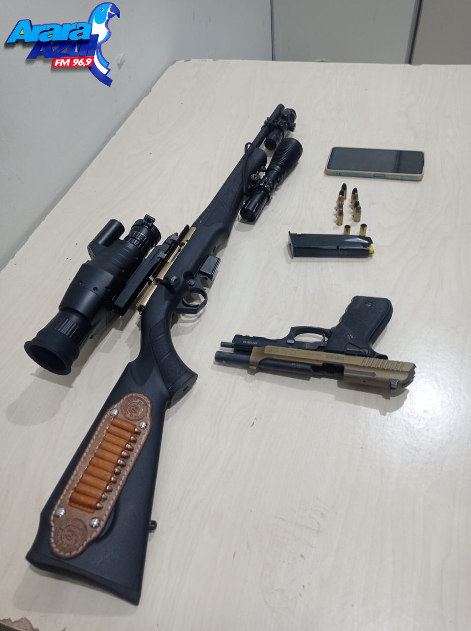 Além disso, Lucas Menezes Ferreira afirmou ser Caçador, Atirador e Colecionador (CAC) e apresentou documentação da pistola; entretanto, declarou não possuir registro do rifle.