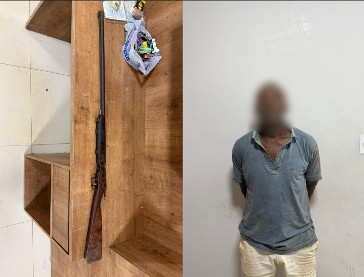 Durante a ação, os militares abordaram Francisco Pereira Galvão, conhecido como Piauí, que admitiu ter emprestado a espingarda usada no crime. Ele entregou voluntariamente a arma, uma espingarda artesanal, do tipo “por fora”, possivelmente calibre 20 e desmuniciada. Como o armamento não possuía documentação de registro, os policiais deram voz de prisão ao suspeito.